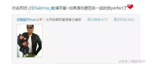 更让人没想到的是,在2010年,魏骏杰在微博晒出抱着女儿的合影,并表示女儿已拿到香港身份证。奈何有个cp粉留言说:满可爱,如果是和滕丽名一起的就perfect了。结果这句话惹怒了魏骏杰,回应网友“你去死吧”……