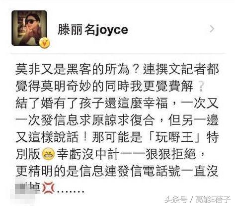 虽然后面又提及旧爱:“滕丽名一点问题都没有,只是你们这帮人太低下了。”