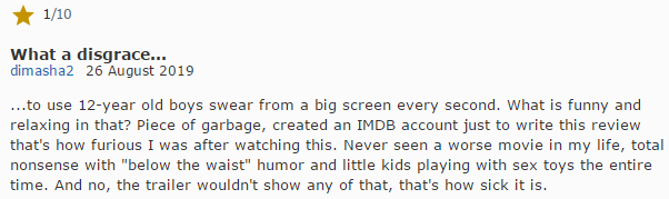 许多被惹毛的美国父母,在imdb上怒刷一星。