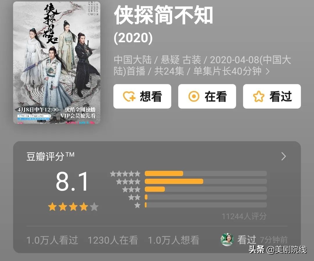 总的来说,《侠探简不知》算得上古龙迷们的福音,近期武侠剧最佳,还没看的朋友快快追起来吧~