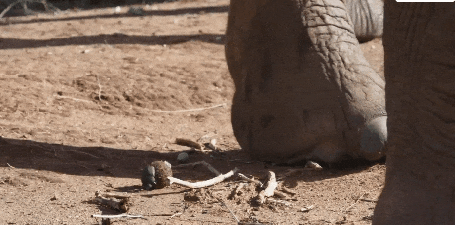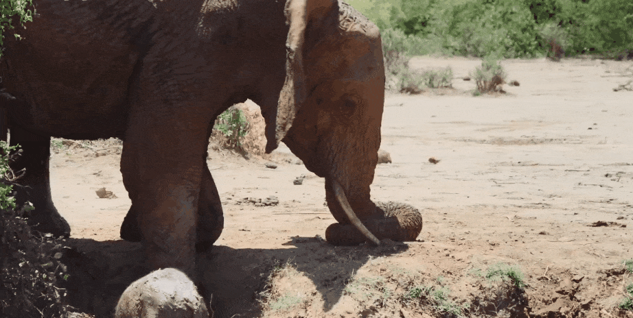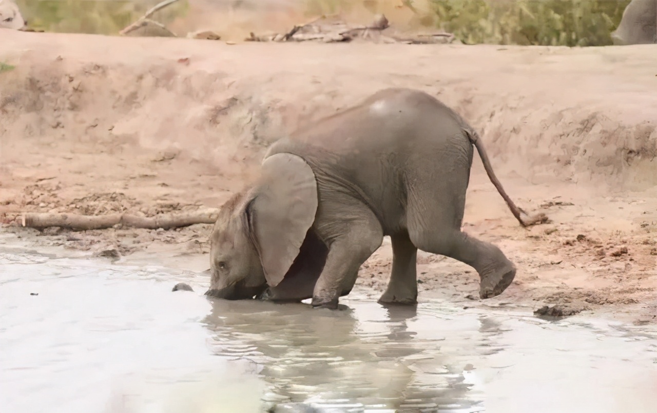 还记得上面那个刚学着用鼻子、学吃土的小象吗?
