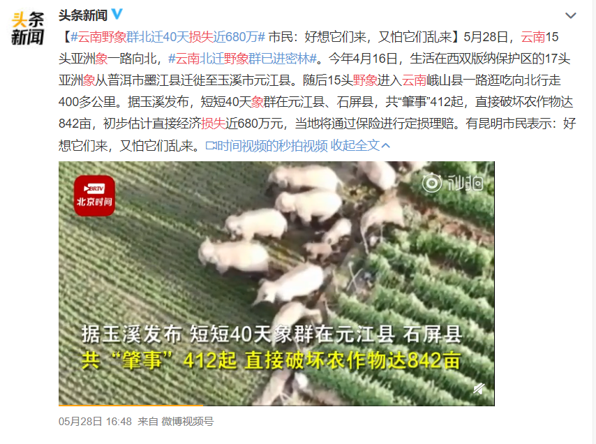 所以这些北迁的象群,一开始并没有引起太大关注。