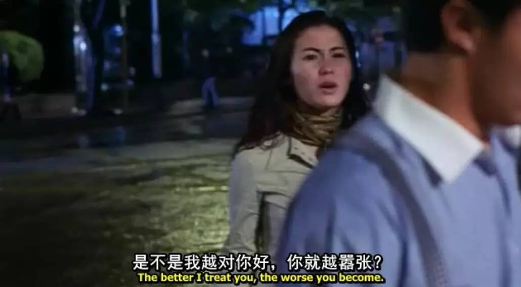 张柏芝饰演的女人是那种一爱上就会全力付出的情种。她的付出程度会随着感情的融洽不断升级。于是她甜蜜地坐了过去,靠在了男人的肩上。