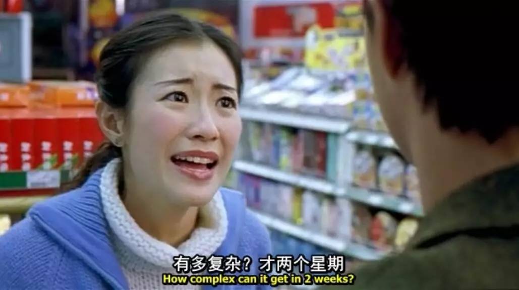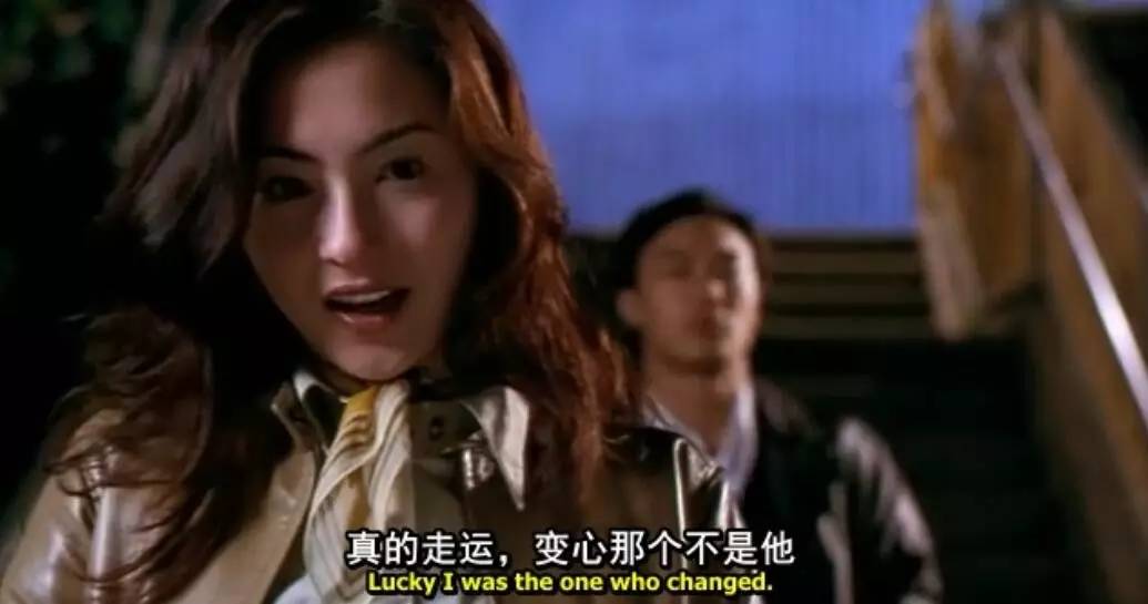 片尾,张柏芝躲着疯狂找寻他的陈奕迅。一个角落,她遇见了谢霆锋。
