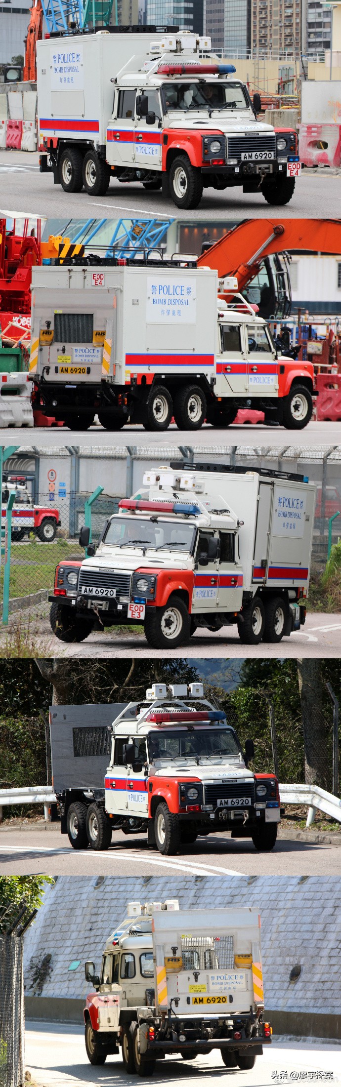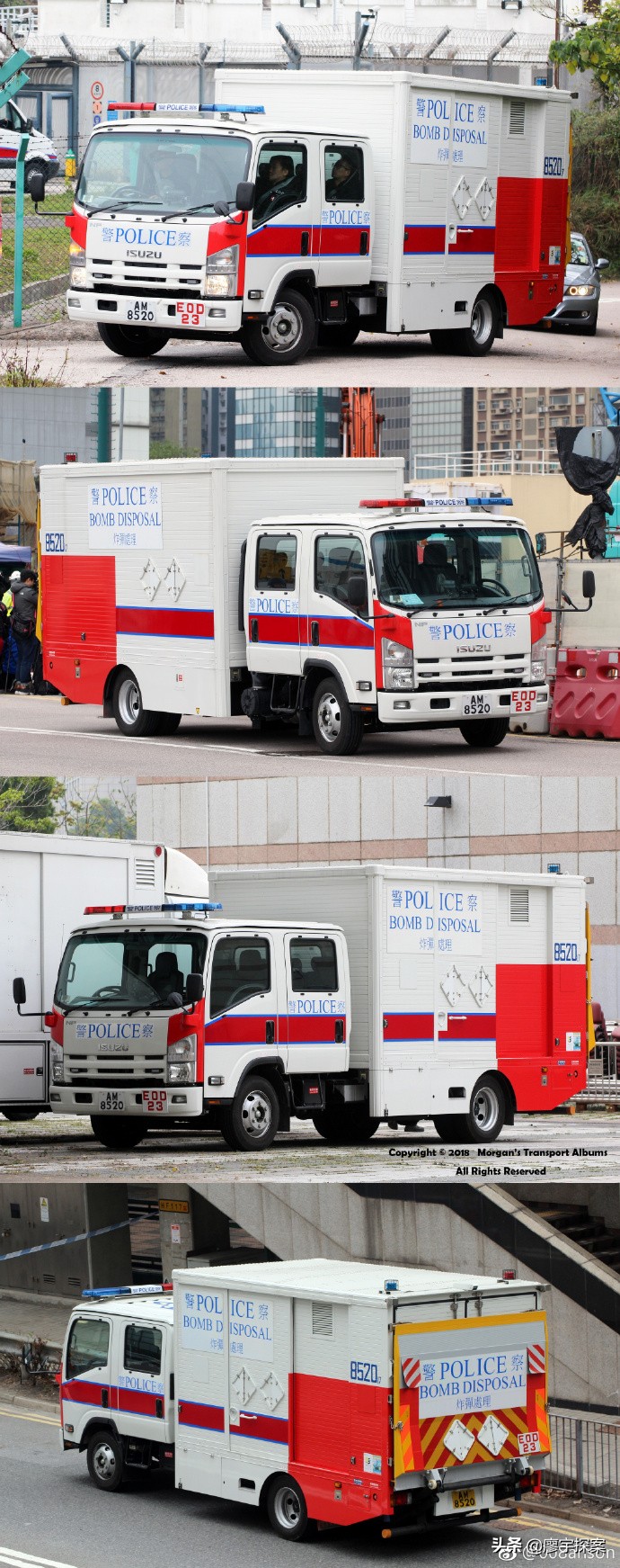 eod也是香港警队中为数不多保留着路虎卫士车型的部门,由于任务特殊eod的车辆也和警务处其他单位有很大不同。首先拆弹人员厚重的防爆服就需要占用很大的空间,拆弹中还要用到各种工具和远程遥控机器人。