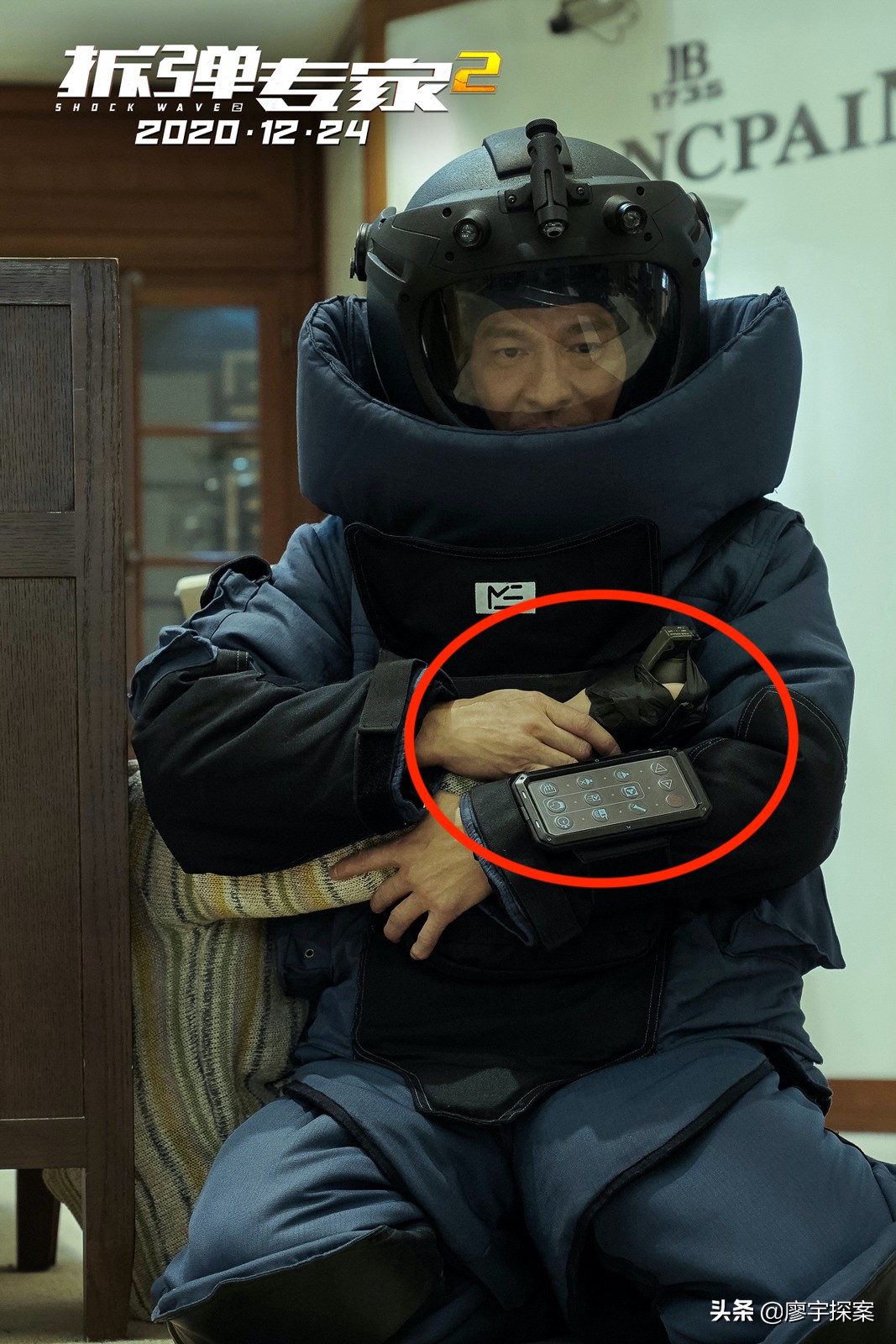 电影中的是道具,应该与真实的防爆服有细微差异,所以具体型号不好判断,根据其外形和电影《拆弹专家》中的防爆服参考,基本上应该是eod-9。