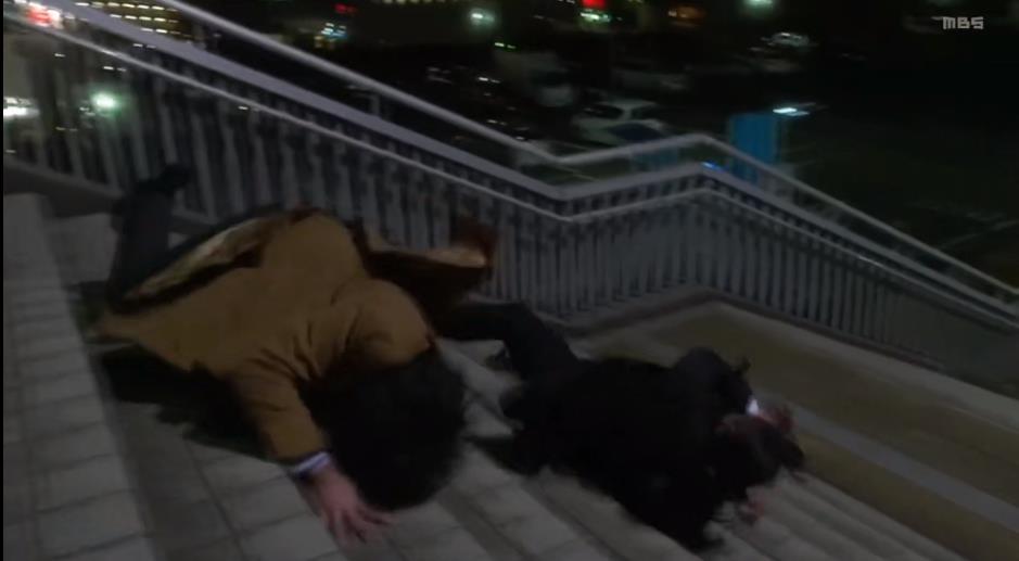 彩子怒火上头就要强行逮捕,两人推搡间一个不留神,一同滚下了楼梯,双双陷入昏迷……