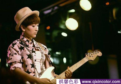 抱着吉它,戴着小礼帽,穿着个性衬衫的马苏看起来还真有摇滚的范儿。如果在妆容上,再下重笔,画上个狂野的烟薰妆,服装搭配的技巧上最大限度利用黑色,闪亮马甲,炫酷的黑色皮衣,金属风格的配饰,相信摇滚女郎该有的狂野不羁味道立马就会呈现出来了。