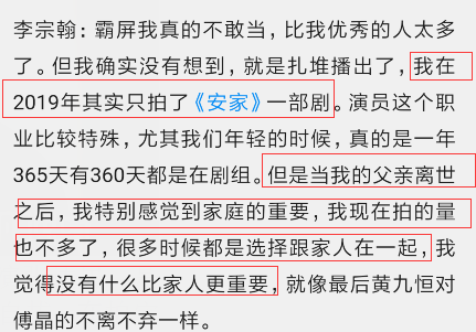 人气小生沦为配角专业户,和李宗翰对事业的态度不无关系。在不久前,他接受采访谈到自己现在的拍戏频率,直言2019只拍了一部《安家》,因为当年他父亲去世,让他意识到陪伴家人的重要性,宁愿多陪家人也不想一年到头泡在剧组里。
