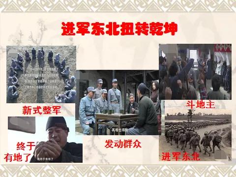 然而,就是在这样的情况下,我党我军从为穷苦老百姓谋幸福的根本宗旨出发,用了短短的2年多时间,完成了土地改革、剿灭土匪和新式整军的三件大事,创造了矛盾双方转化的条件,彻底扭转了被动的局面。