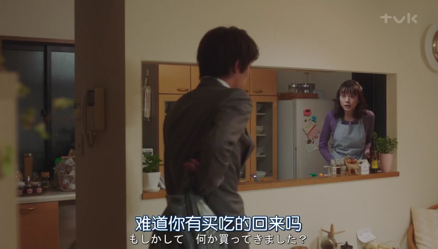 下班后,他们都想着为对方准备食物,男主看到女主正在做饭,害怕辜负了女主的心意,连忙把自己买的食物藏在身后,但是女主还是看到了,两人就欣慰的露出了笑容。互相惦记的感觉,总让人感到很温暖很幸福。