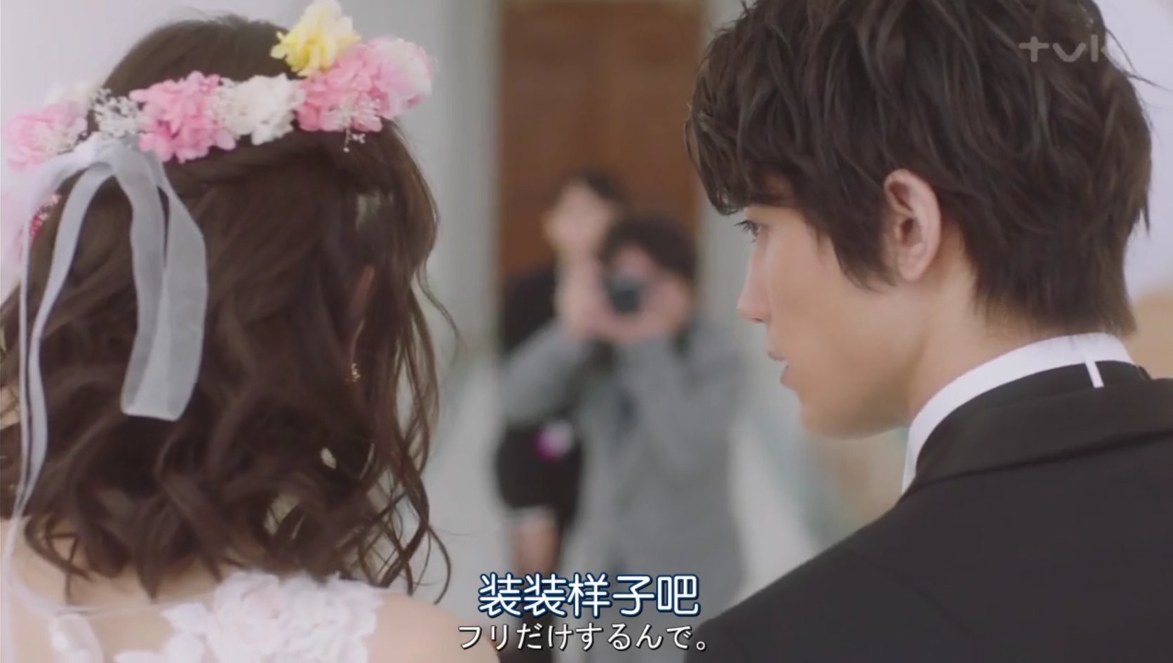 男女主刚认识就结婚了,结婚免不了拍照,但拍婚纱照的时候,难免会有一些亲密的举动,摄影师让他们亲吻的时候,男主注意到女主有些顾虑,便对女主说装装样子就好,短短几个字不仅安抚了女主的焦虑,而且也体现了男主的绅士风度。我们都不想做不敢表达情绪的小鬼,情绪能够被照顾的感受,怎能让人不心动呢!