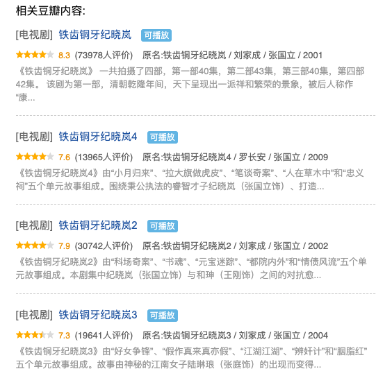 目前,在豆瓣上,每一部都保持着7.3到8.3分的评价。