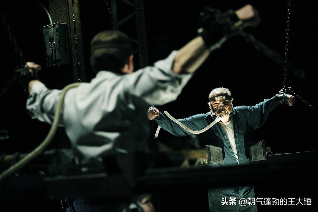 1. 两个人锁在一个机器上,一个被缝合了嘴,一个被缝合了眼,两人在无法沟通的情况下要找到对方脖子后的密码给自己解锁,否则都得死。