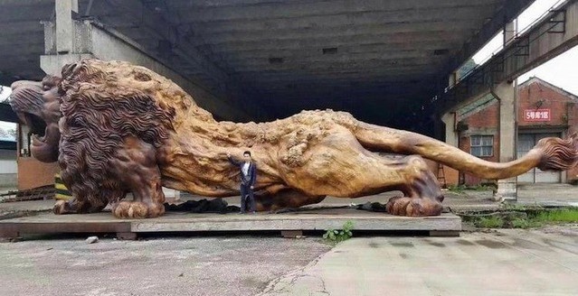 虽然随着社会的不断发展,很多老手艺正在被新机器一点点的取代,但是这并不阻碍精巧作品的面世。家住广西盘屋村的龙师傅,就是当地极为有名的木工匠人,他就曾组织过数十位工匠,雕刻出一只身长15年举行根雕"东方雄狮"。根据他的说法,为了将这只巨型雄狮打磨成一件精美的工艺品,他们团队先后足足用了六个多月的时间,其中所消耗的人力物力就高达200多万,而且原材料还是极为珍贵的30吨楠木。