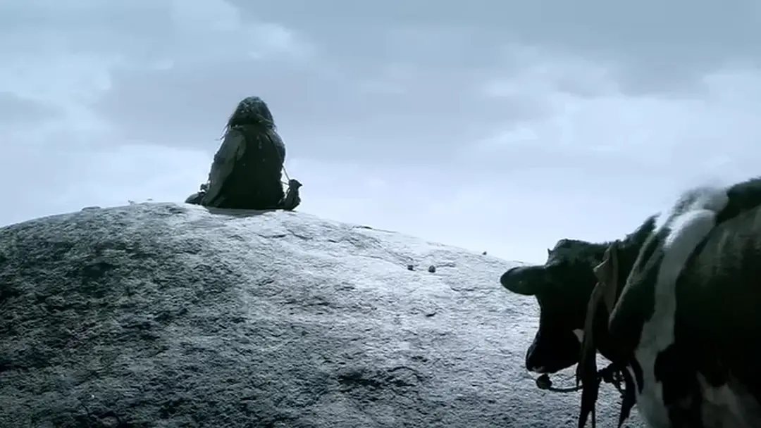 - 游走于悬崖的人和牛——牛二牵着牛来来回回在悬崖边游走的镜头,这个场景的反复出现传递出了一种宏大的寓意:生命的边缘,牛二在乱世中求生,寻求一片安宁与解脱。