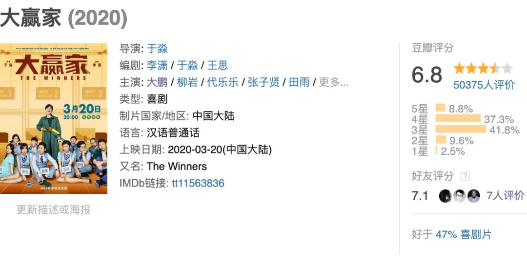 《隐形人》给75分,《大赢家》给70分。
