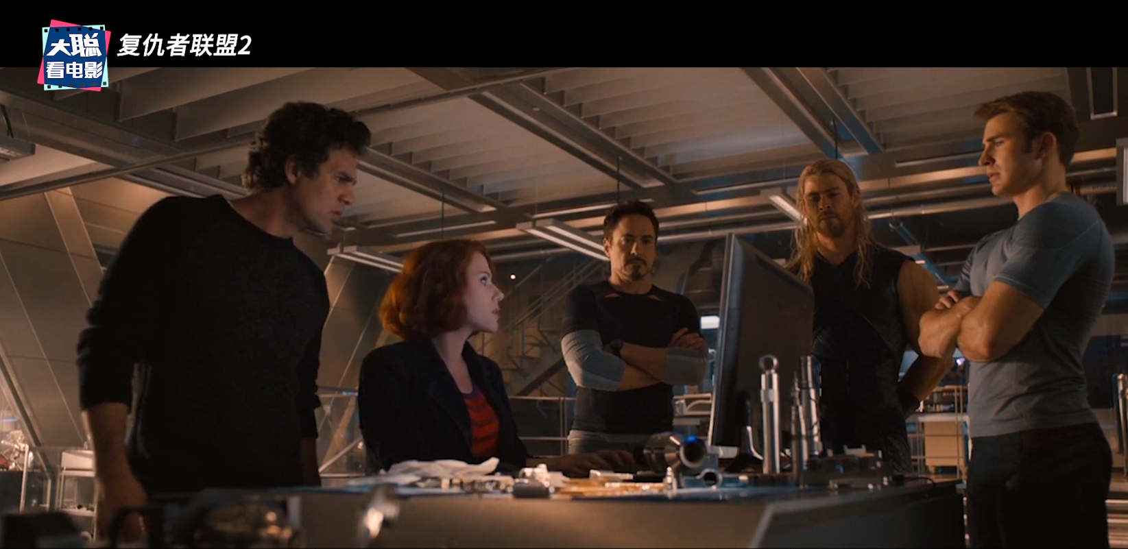 之后寡姐在神盾飞船上遇见了美国队长史蒂夫,然后开战机一起逮捕了洛基,期间也有钢铁侠加入,结果半路杀出雷神差点劫走洛基,在一番嬉戏打闹之后,雷神同意先把洛基带回神盾飞船审问。