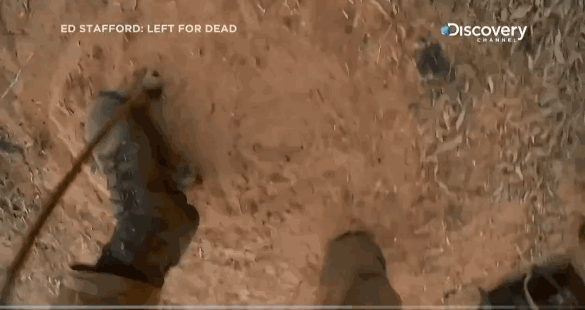 终于,凭借德爷丰富的野外生存知识和经验,他找到了一个干河床。