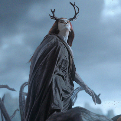 第3点是服化道,演员们的造型大多不尽人意,这里重点说一下陈伟霆的造型。陈伟霆在电影中,一头红发额头还顶了一对鹿角,最莫名其妙的是他的坐骑,他骑在了一只烤黑了的乌鸡爪上,嘴里吐墨汁,看得人满头问号。