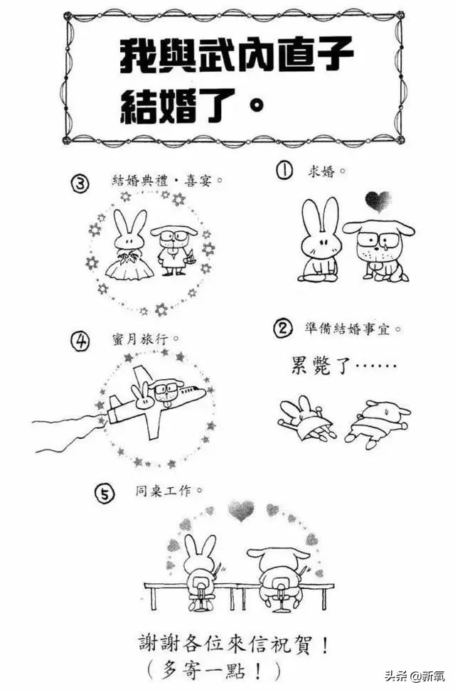 后来俩人结婚的时候,还画了一副超可爱的漫画。