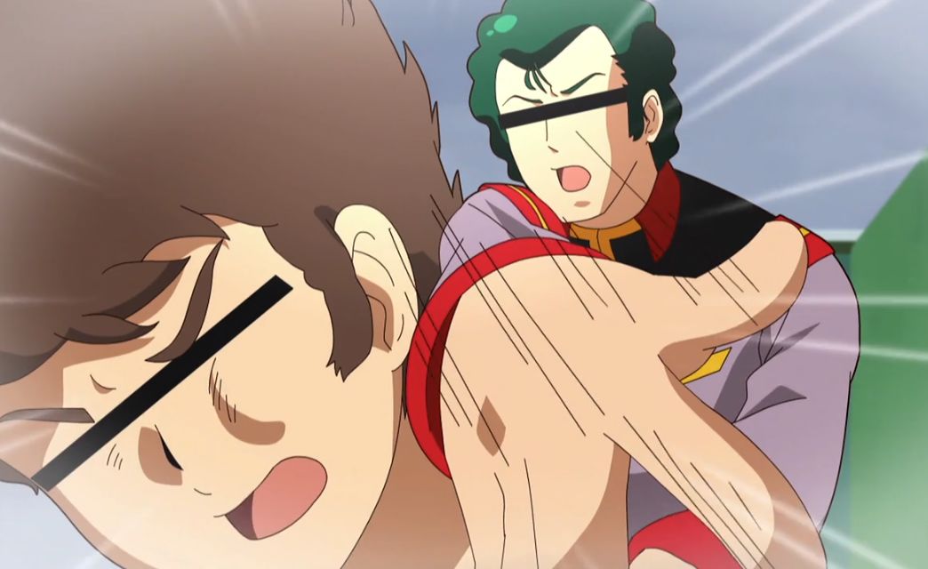 这个梗最早出自《机动战士高达0079》第9集。在之前我们也说过,这一集中阿姆罗因为自己的任性不愿意驾驶高达出战,于是被有德打了俩巴掌。