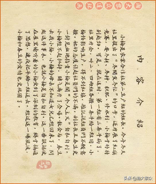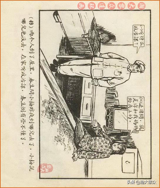 内容介绍:小梅是农业合作社第二生产组的组长。今年冬天社里提出了“冬闲灭冬忙”的口号,还开展了红旗竞赛,要冬耕、冬种,积肥、修水利。小梅干的特别起劲。可是,就在这时,第一组有三条牛病了,社里开会,叫二、四两组各拨一条牛给一组用,小梅怕影响生产,得不到红旗,推托说组员们不愿意拨。她的态度引起社员们的不满。副社长王春生更一针见血地指责小梅是闹“个人主义”自私自利。小梅经不起批评,赌气离开了会场。散会后,春生去找小梅,小梅的母亲不知道女儿已经回来了,问起这件事来,也说小梅是自私自利。这一番谈话使在屋里偷听着的小梅受到了深刻的教育,终于搞通了思想,连夜把牛给一组送去。经过这一场风波,小梅春生的发情也更巩固了。