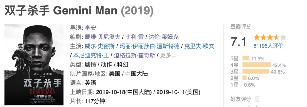 在这里畅谈了这么多,并不是我对李安导演的《双子杀手》评判太严格,而是一种平衡。
