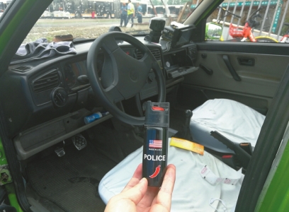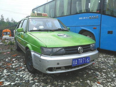 21日下午,记者在执法总队四大队停车场内,见到了车牌为川atr716的克隆出租。这是一辆老款大众车,车况比较破旧,保险杠裂了好几个缝。打开车门,车内设施很旧,但计价器、发票和出租汽车服务资格证一应俱全,不过都是伪造的,还有一瓶辣椒水。
