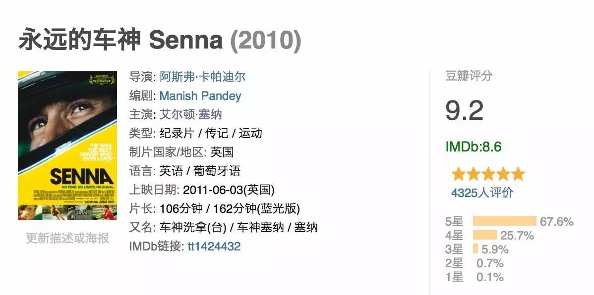 然而这两天,看完一部纪录片《永远的车神》后,却让我见证了一个天才急骋于人间的神话,真切地感受到这项竞技危险与激情并存的魅力。