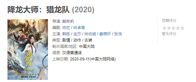 电影名叫《降龙大师:猎龙队》,我猜听过的都不多,更别说看过了。