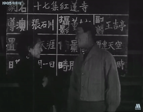 宣景琳和王吉亭在电影《银幕艳史(下集)》 (1931)中的影像——其背景板上告知片场内正在拍摄《红莲寺17集》,红莲寺可是当时最火的系列电影