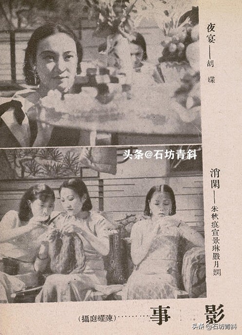 1934年10月24日出版的口袋杂志《玲珑》第158期内页,上图为胡蝶,下图左起:严月娴、宣景琳、朱秋痕