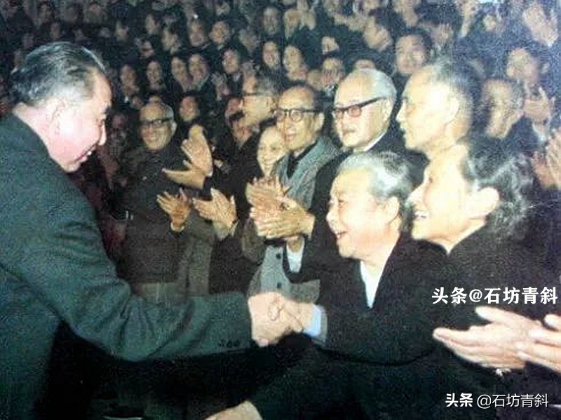 华国锋接见出席第四次全国文代会的电影界代表时与宣景琳(右)握手