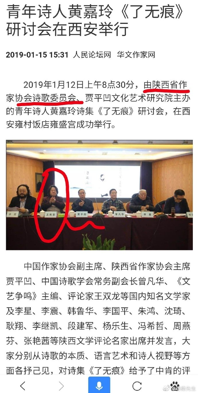 头条文章作者“明德先生”爆料称,有关贾浅浅的文学研究,集中在《文艺争鸣》这份杂志中,杂志的社长、主编王双龙曾在一次诗歌研讨会上临近贾平凹而坐。作家乔木称“王双龙和陕西的作协领导、刊物主编贾平凹是同行、哥们儿,合影不少”。他还表示,这是“互相站台,都有台面”。