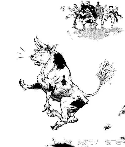 那五个人一见,高兴地喊起来:“这才是头最高大、最暴烈的牛呢!带他去参加马德里的斗牛赛很合适。