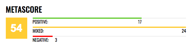 北美权威电影评分网站metacritic给电影打分54,44影评人打出的平均分,24人给出中评,17人好评。总体评价电影中规中矩,没有惊喜也不多亮点,在形式和内容上因为雷同被扣分居多。