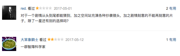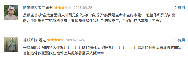 尴尬的题材、太过相似的剧情,在开拍之前就不被看好,一直被吐槽复制经典电影《异形》。但看完一轮评分,包哥觉得并没有想象中那么糟,豆瓣有接近53%的观众给出了4星以上的高分。
