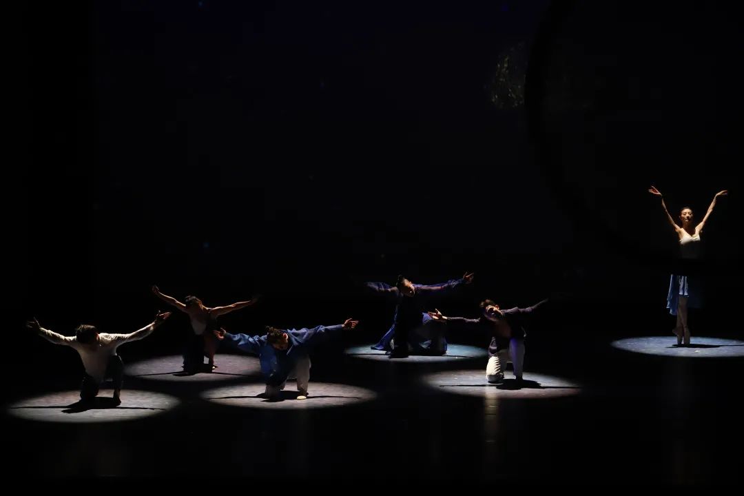 而演出的最后一幅画——梵高的《星空》,则是众多舞者的共同选择。导演周可表示,参演的舞者有跳芭蕾、民族舞、现代舞的,彼此截然不同,但在《星空》中,大家都化作星空中的一颗颗繁星,所有人同时跳芭蕾,同时跳民族舞、同时又都跳现代舞。“所有人都摒弃了边界。”周可说。
