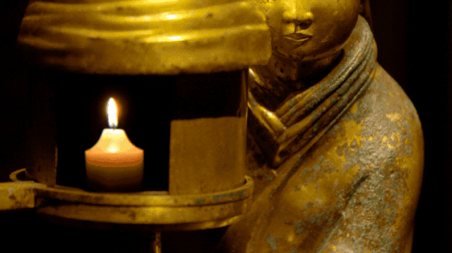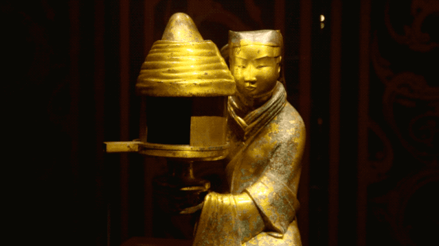 当汉代人坐下来翻翻竹简,把这件宫灯平放在地上,聚拢的光束照下来,高度刚刚合适,而且开口宽度还可以调节。