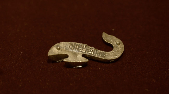 这是在刘非的一个妃嫔墓出土的,一件非常小的银质“合符型带钩”,带钩可以掰开成两半,也可以合上,像一个符一样。