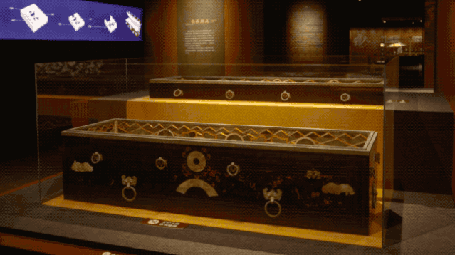 全国修复完整的镶玉漆棺,目前就两件。1件是本次展览的这件,另一件是徐州狮子山楚王陵出土的玉棺,现在在徐州博物馆展出。