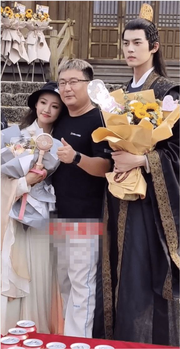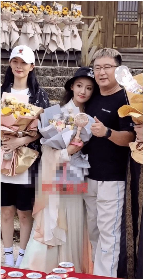 而站在女一号和导演旁边的分别是女二和男一,各自捧着鲜花拍照,也没有理会女一号和导演的亲昵动作,看起来也是见怪不怪了,可见平时在片场,这样的场景也是不少见。
