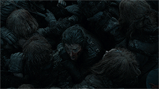 其次,由于大部分预算都用作演员片酬了,其它的部分只好将就一下,比如震撼人心的《私生子大战》,实景拍摄就不用了,全部用特效,于是剧迷看到的就是一堆特效马冲向雪诺,自己脑补一下吧。