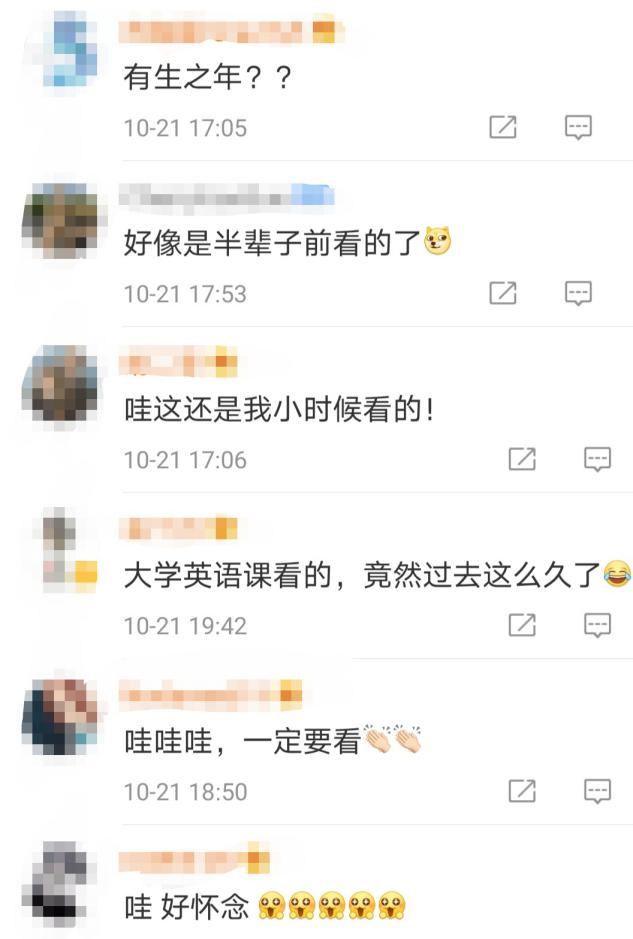 很多剧迷看到第三部定档的消息后表示"有生之年""回忆杀"。还留言称"大学英语课看的,竟然过去这么久了,好像是半辈子前看的了"、"英文课本上的电影"。感慨时光飞逝。