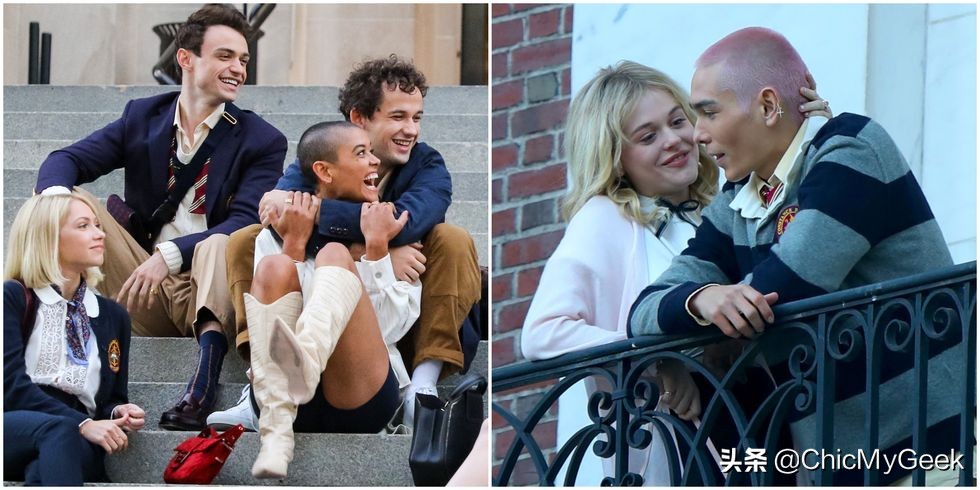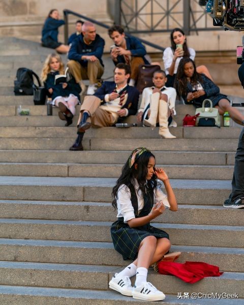 曝光的剧照让人仿佛掉进时光隧道,7位高中生悠哉地坐在纽约大都会博物馆前的阶梯上,让人回想到原版《绯闻女孩》的画面!