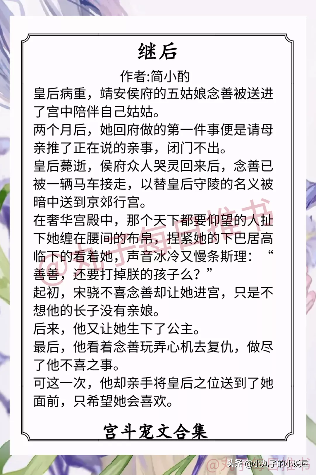 2.《继后》 作者:简小酌(心机美人vs狗皇帝,禁忌之恋,后宫晋级之路,追妻火葬场)