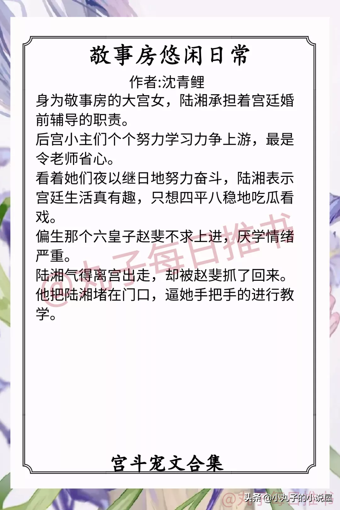 5.《敬事房悠闲日常》 作者:沈青鲤(佛系宫女vs纨绔皇子,微宫斗,平淡日常向)