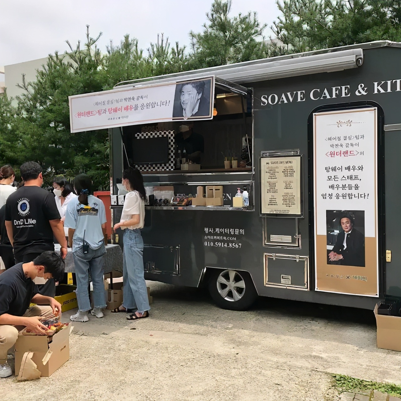 △ 《分手的决心》剧组和朴赞郁给汤唯送的咖啡车
