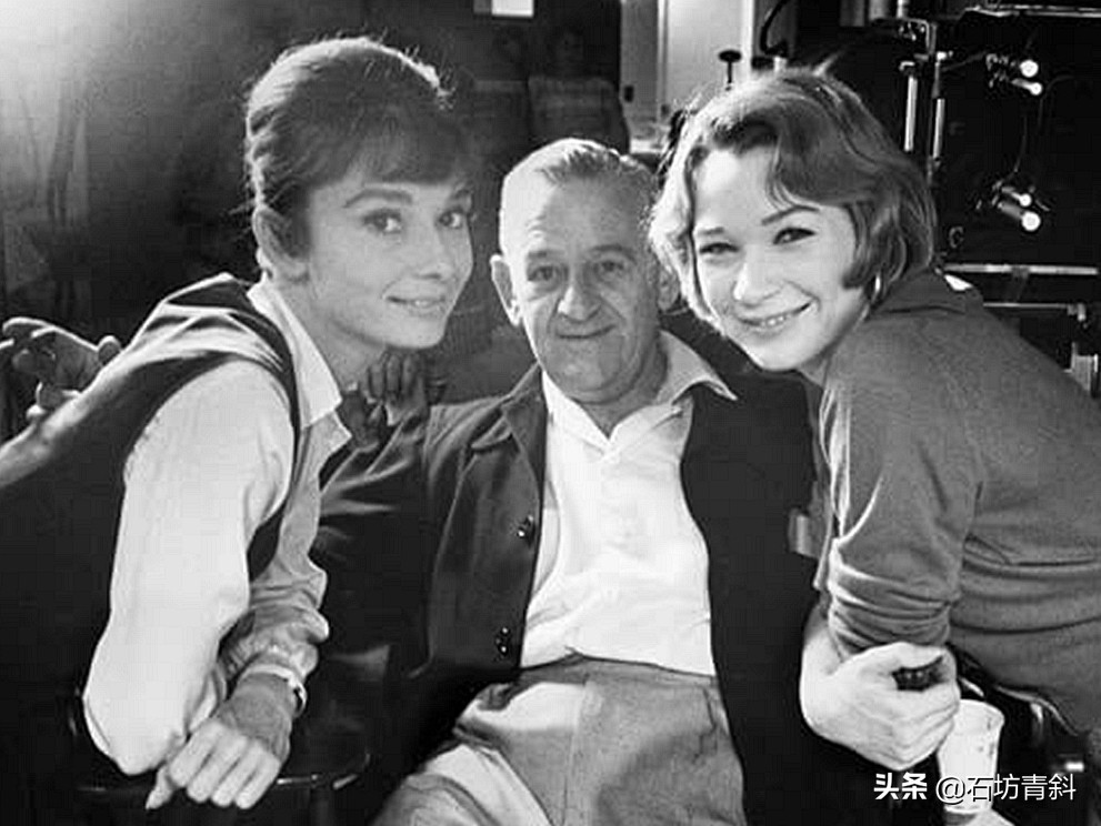 在电影《双姝怨the children's hour》(1961)片场内,左起:奥黛丽·赫本audrey hepburn、导演威廉·惠勒william wyler和雪莉·麦克莱恩shirley maclaine